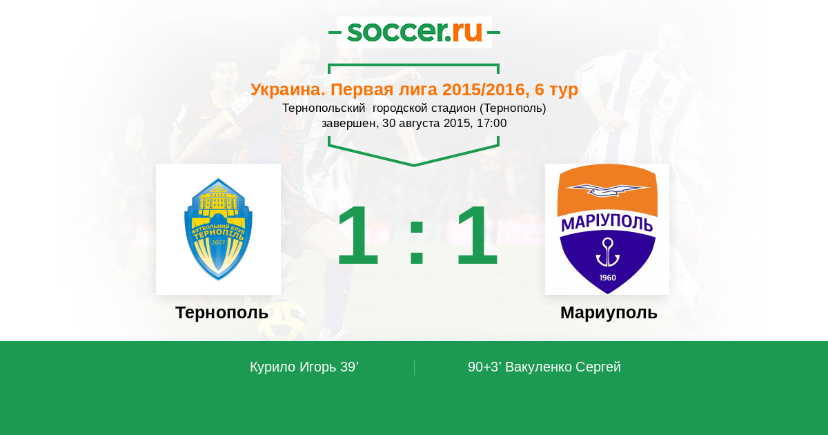 Протокол матча Тернополь против Ильичевец