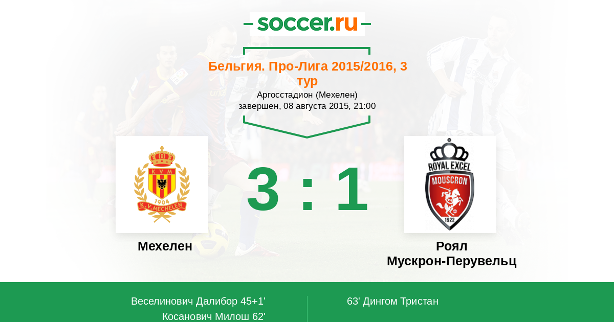 Протокол матча Мехелен против Роял Мускрон-Перувельц