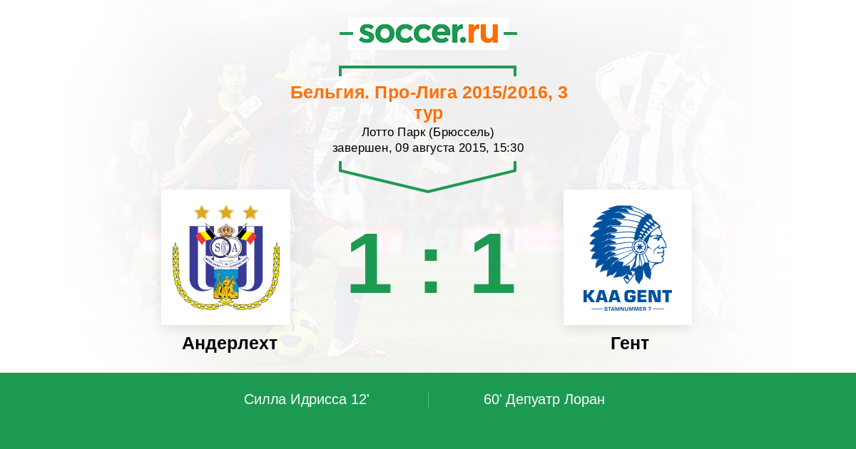 Протокол матча Андерлехт против Гент