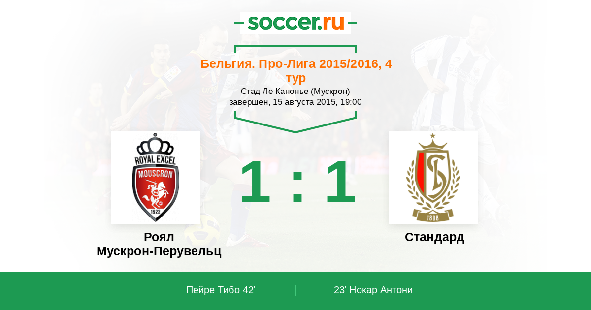 Протокол матча Роял Мускрон-Перувельц против Стандард