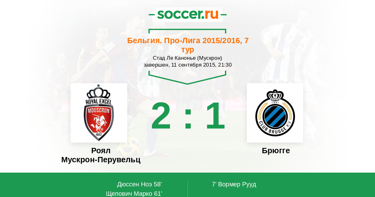 Протокол матча Роял Мускрон-Перувельц против Брюгге