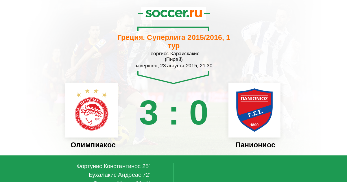 25' (1:0) Фортунис Константинос (7) (Дурмаз Джимми (21))
