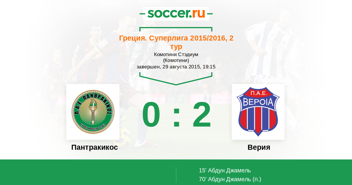 15' (0:1) Абдун Джамель (93) (Назлидис Томас (9))