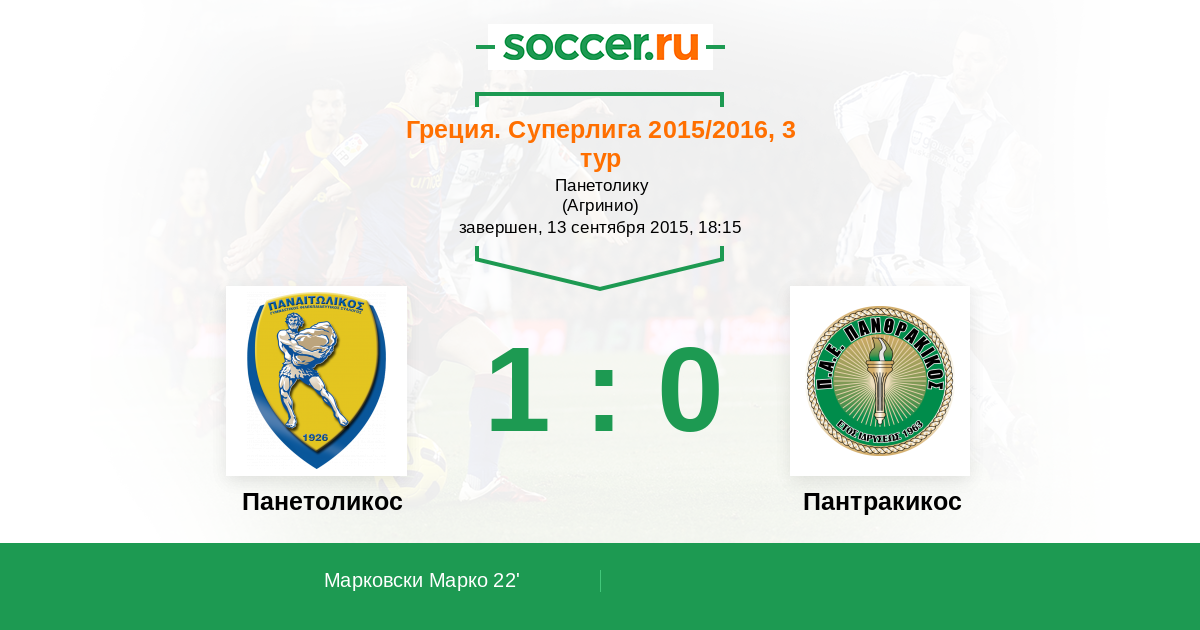 Протокол матча Панетоликос против Пантракикос