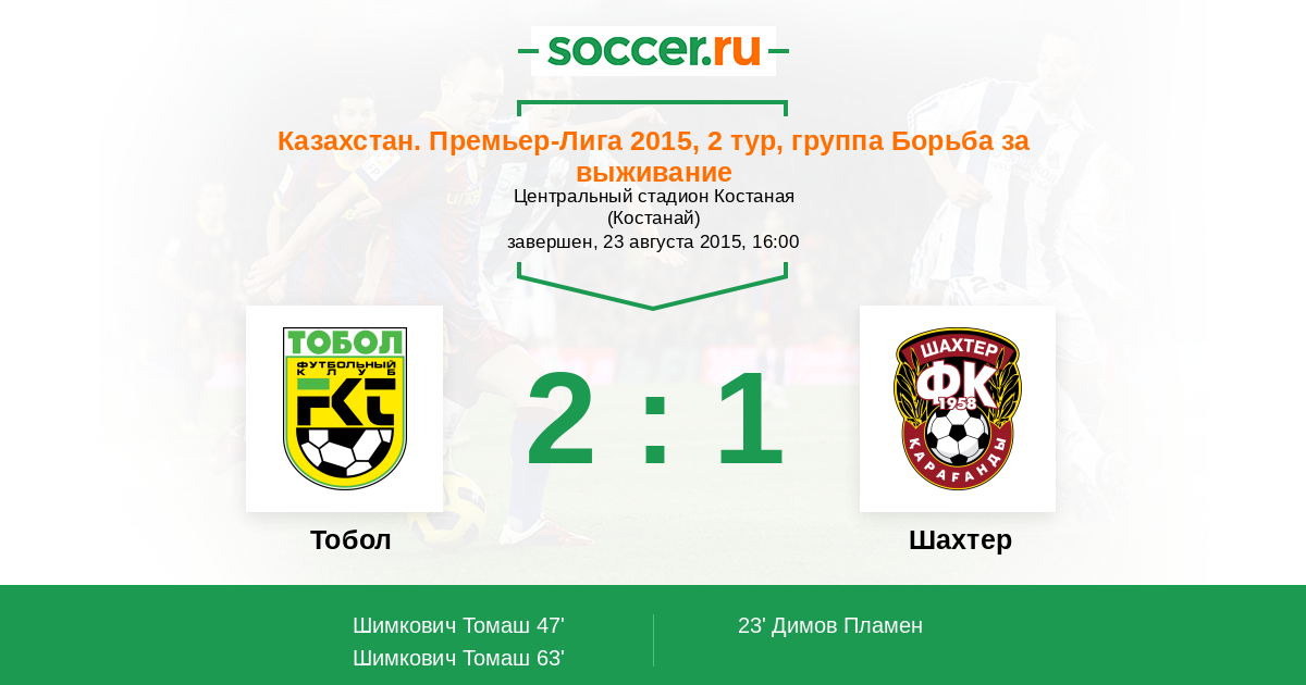 Протокол матча Тобол против Шахтер