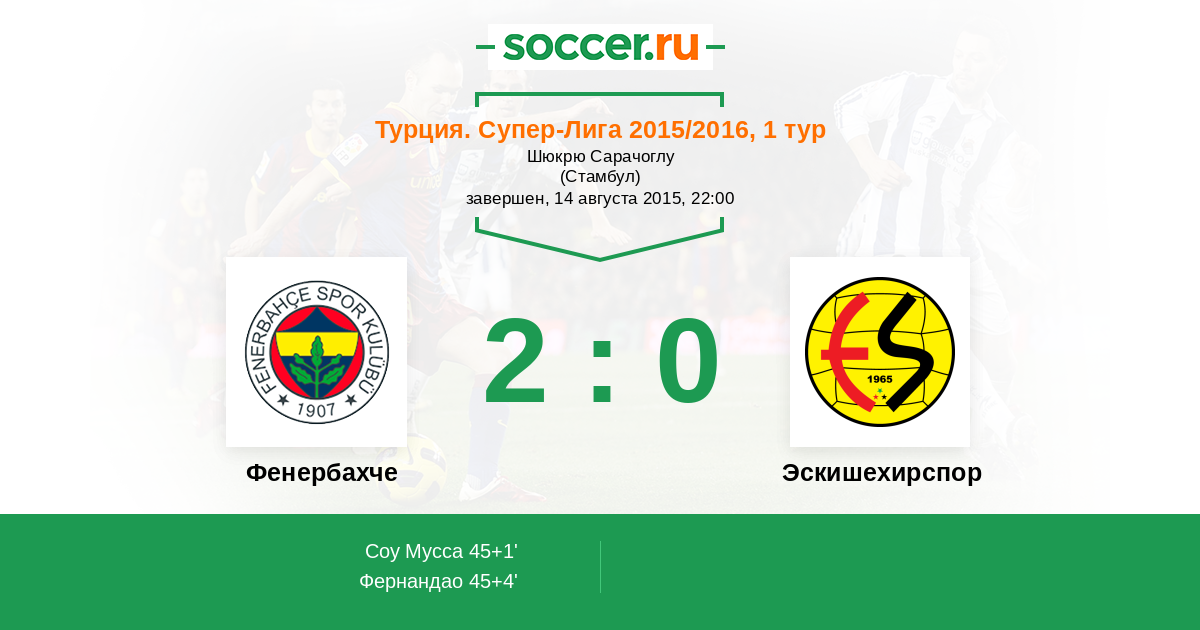 Протокол матча Фенербахче против Эскишехирспор