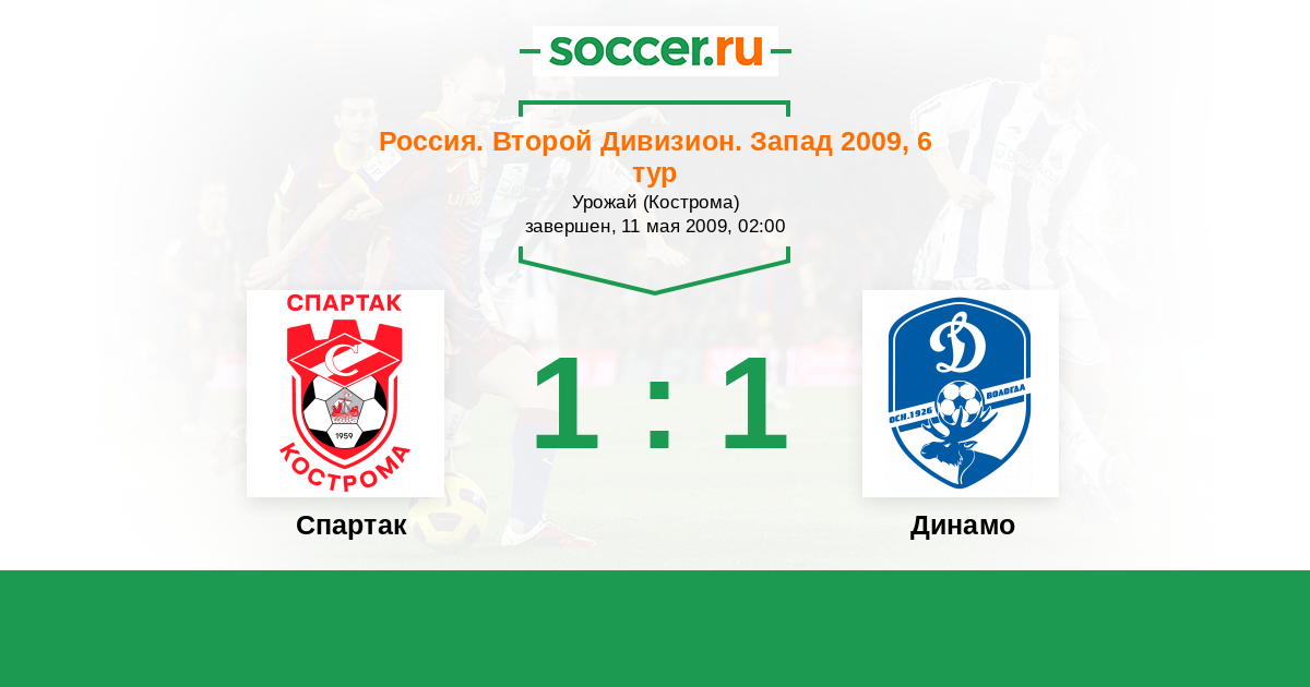 Россия. Вторая лига. Группа 2 20.06.2011 Динамо Вологда Логотип футбольный клуб Динамо Вологда 1:1 Логотип футбольный клуб Спартак Кострома Спартак Кострома