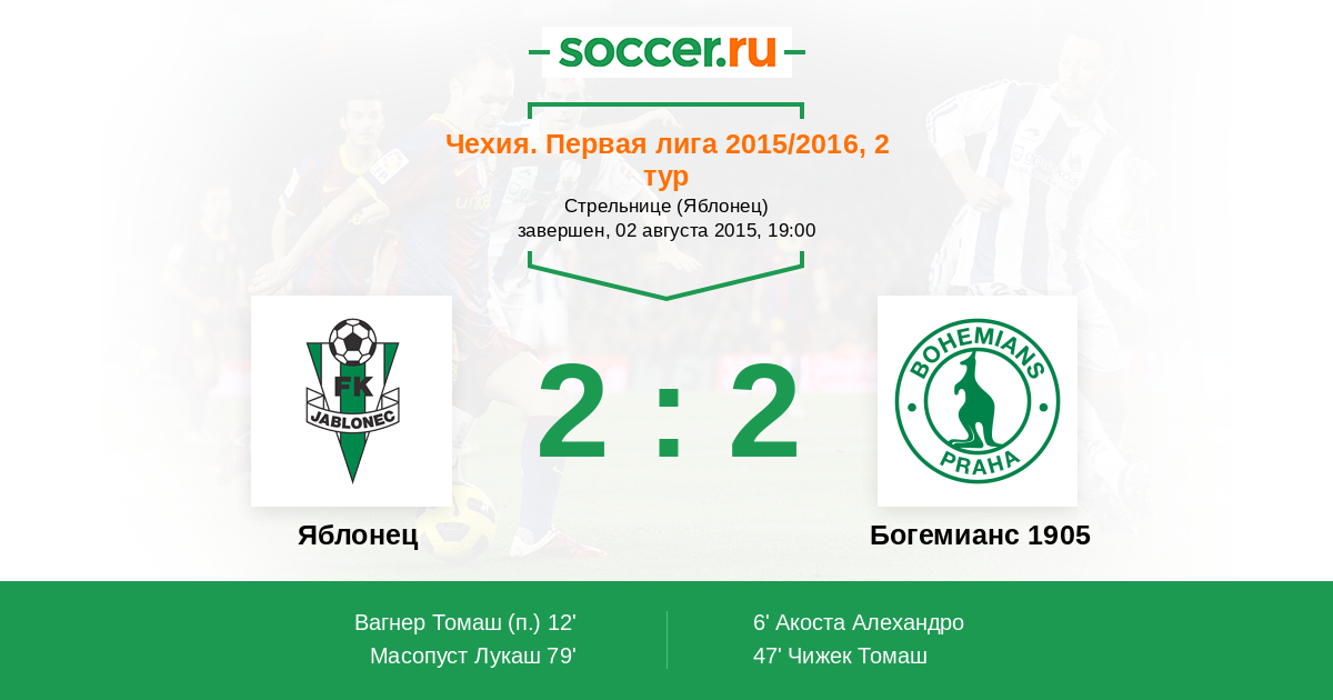 Протокол матча Яблонец против Богемианс 1905