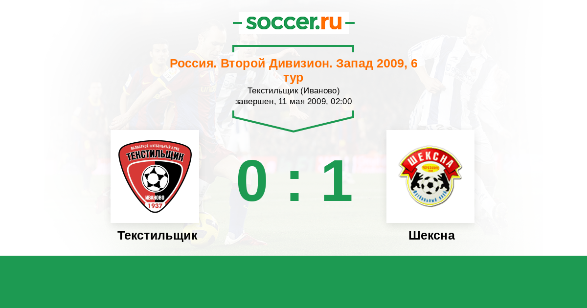 Россия. Вторая лига. Группа 2 14.05.2010 Шексна Логотип футбольный клуб Шексна (Череповец) 0:0 Логотип футбольный клуб Текстильщик (Иваново) Текстильщик