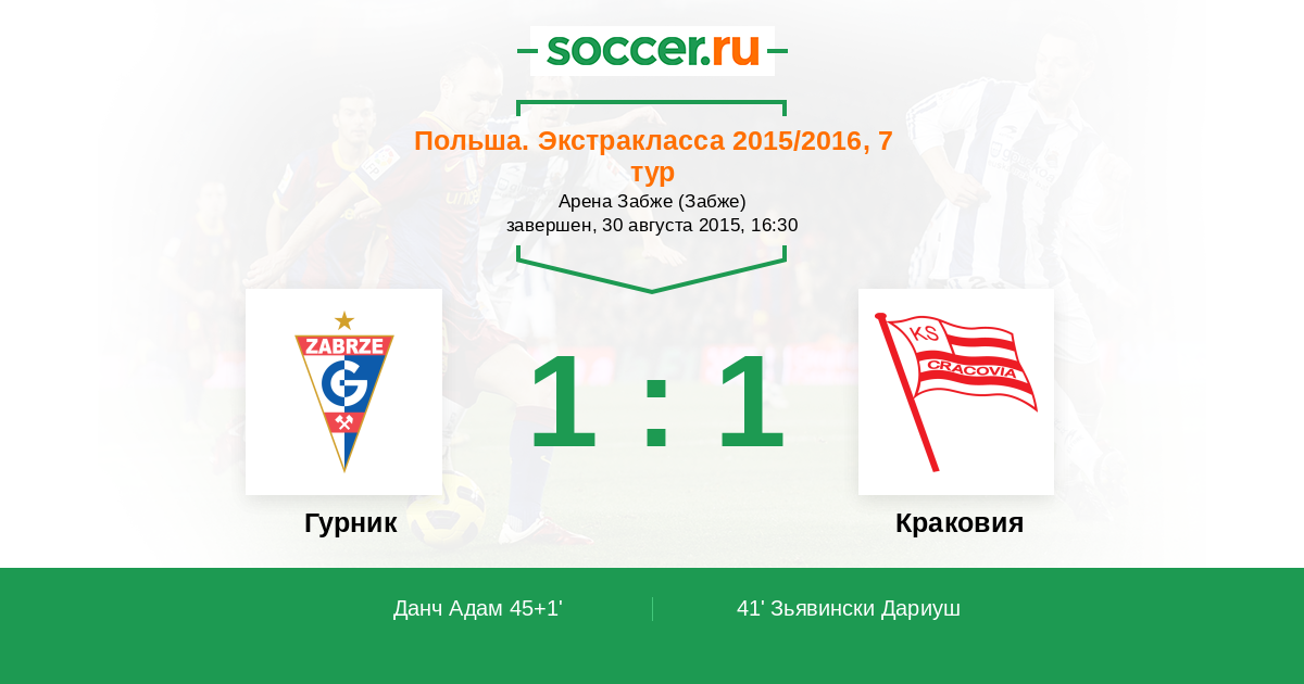 Протокол матча Гурник против Краковия