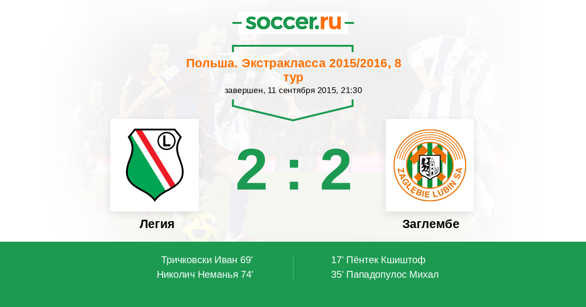 Протокол матча Легия против Заглембе