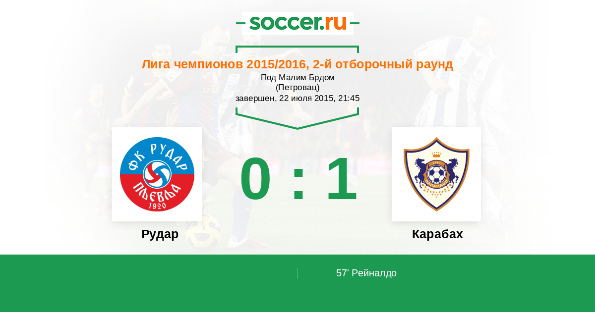 Протокол матча Рудар против Карабах