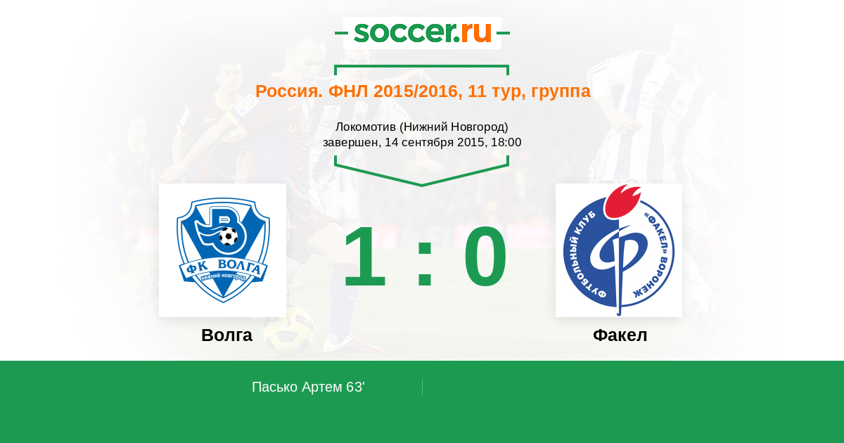 Протокол матча Волга против Факел