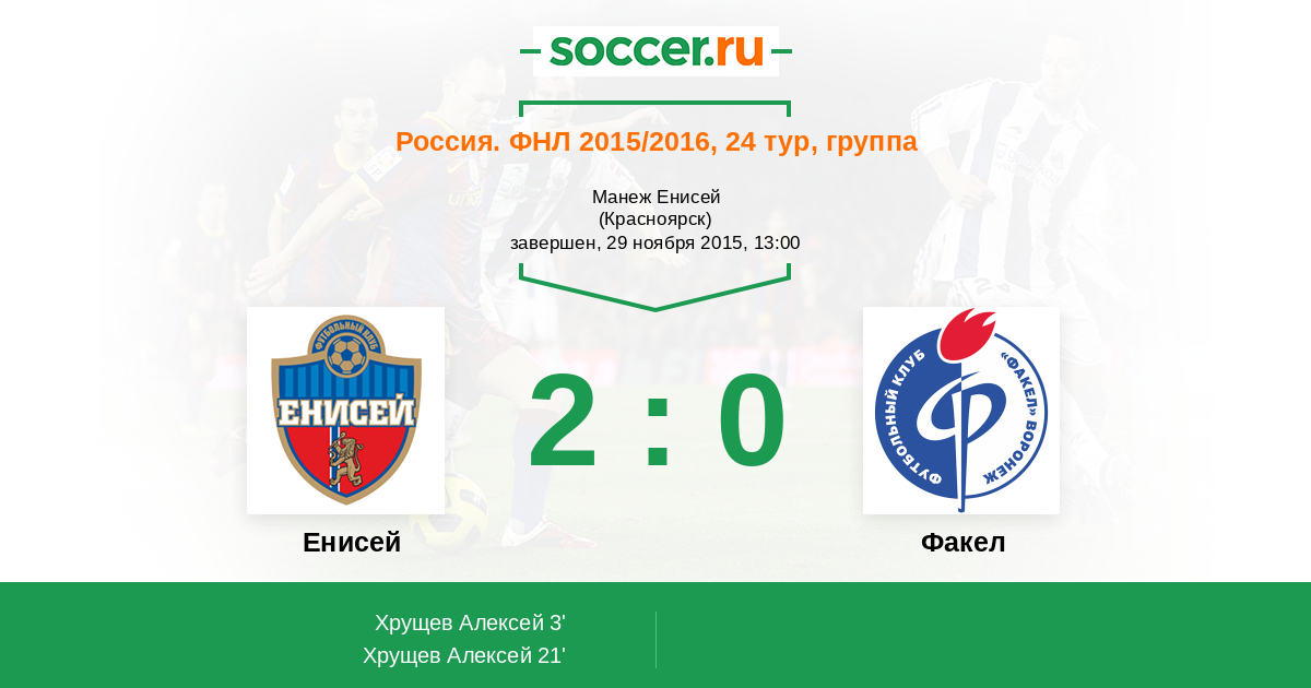 Протокол матча Енисей против Факел