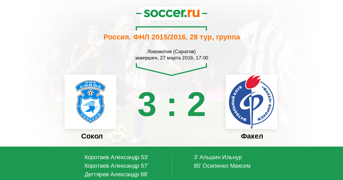 Протокол матча Сокол против Факел