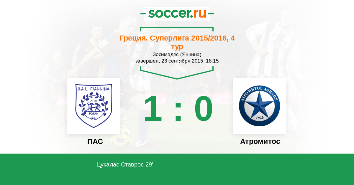 Протокол матча ПАС против Атромитос