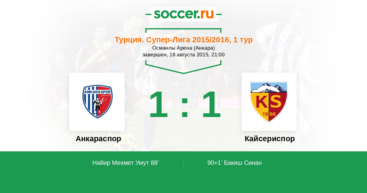 90+1’ 1:1 Бакиш Синан