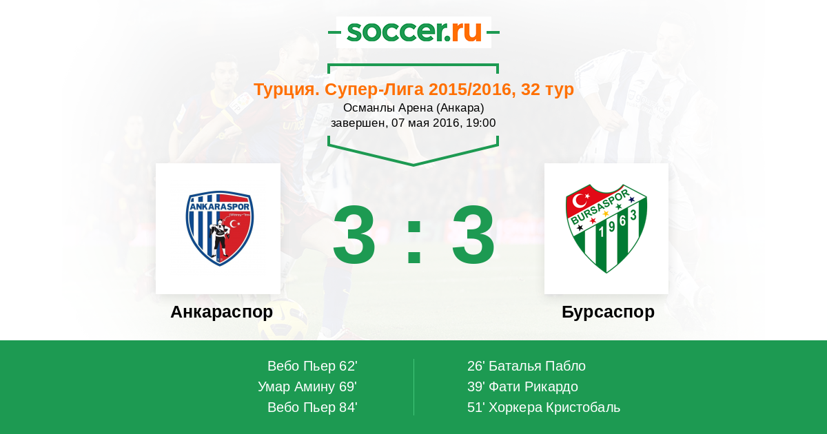 84' (3:3) Вебо Пьер (9) (Киличашлан Эрдал (11))