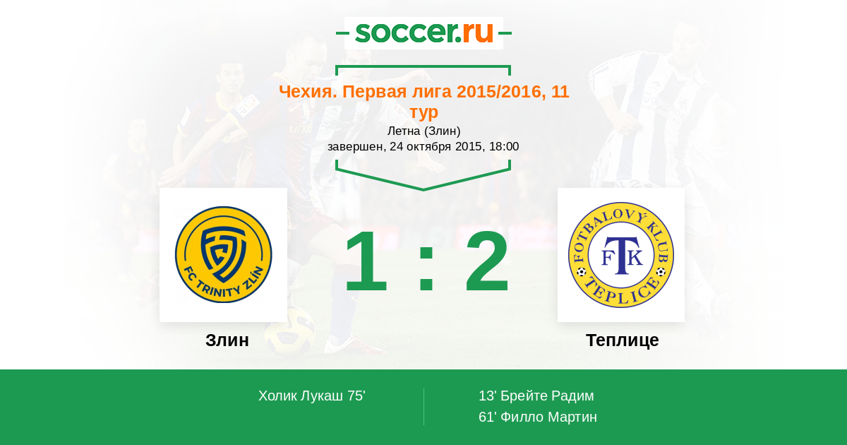 Протокол матча Злин против Теплице