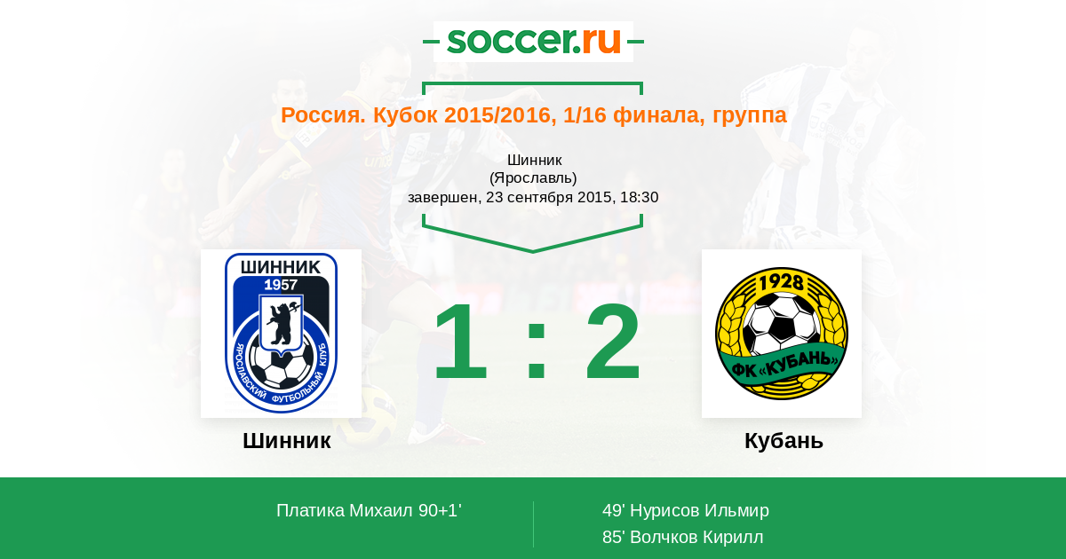 Протокол матча Шинник против Кубань