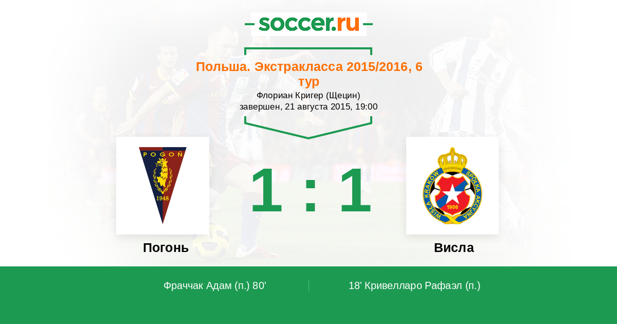 Протокол матча Погонь против Висла