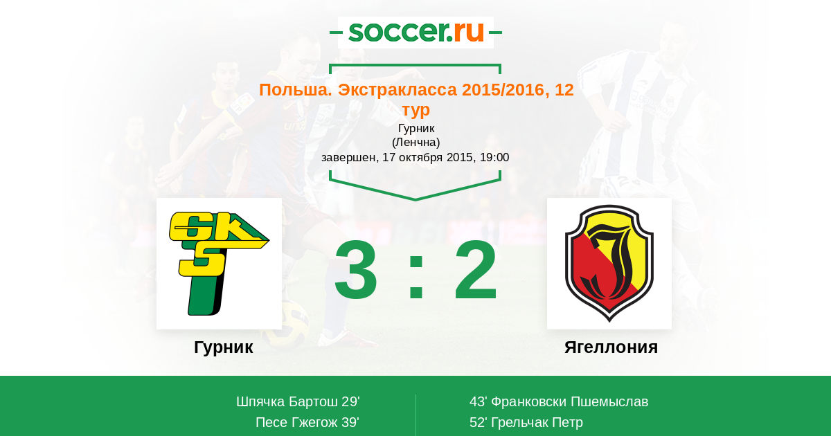 Протокол матча Гурник против Ягеллония