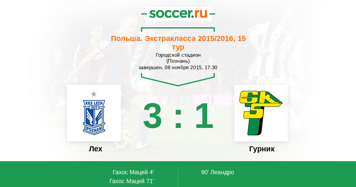 Протокол матча Лех против Гурник