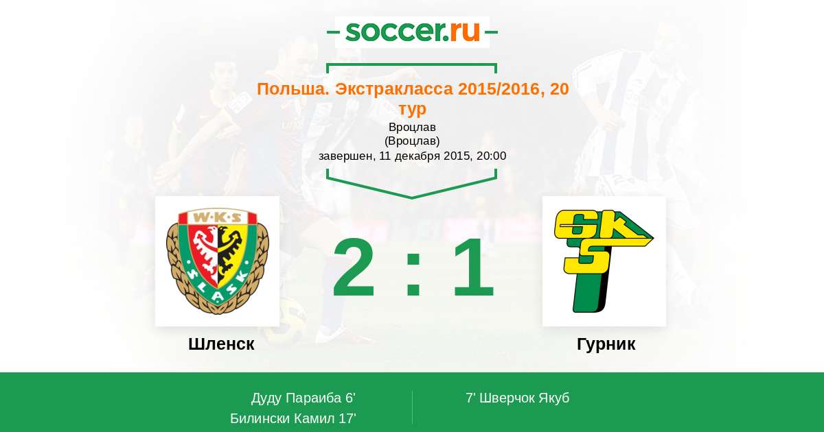 Протокол матча Шленск против Гурник