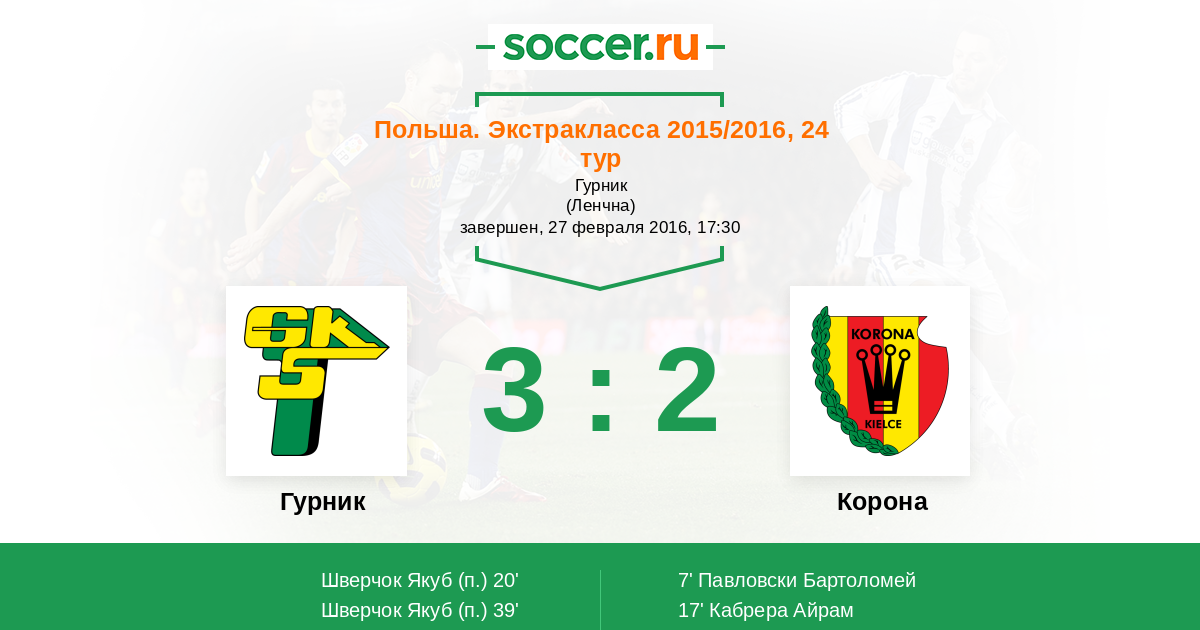 Протокол матча Гурник против Корона