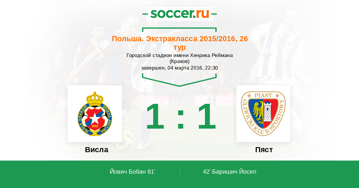 Протокол матча Висла против Пяст