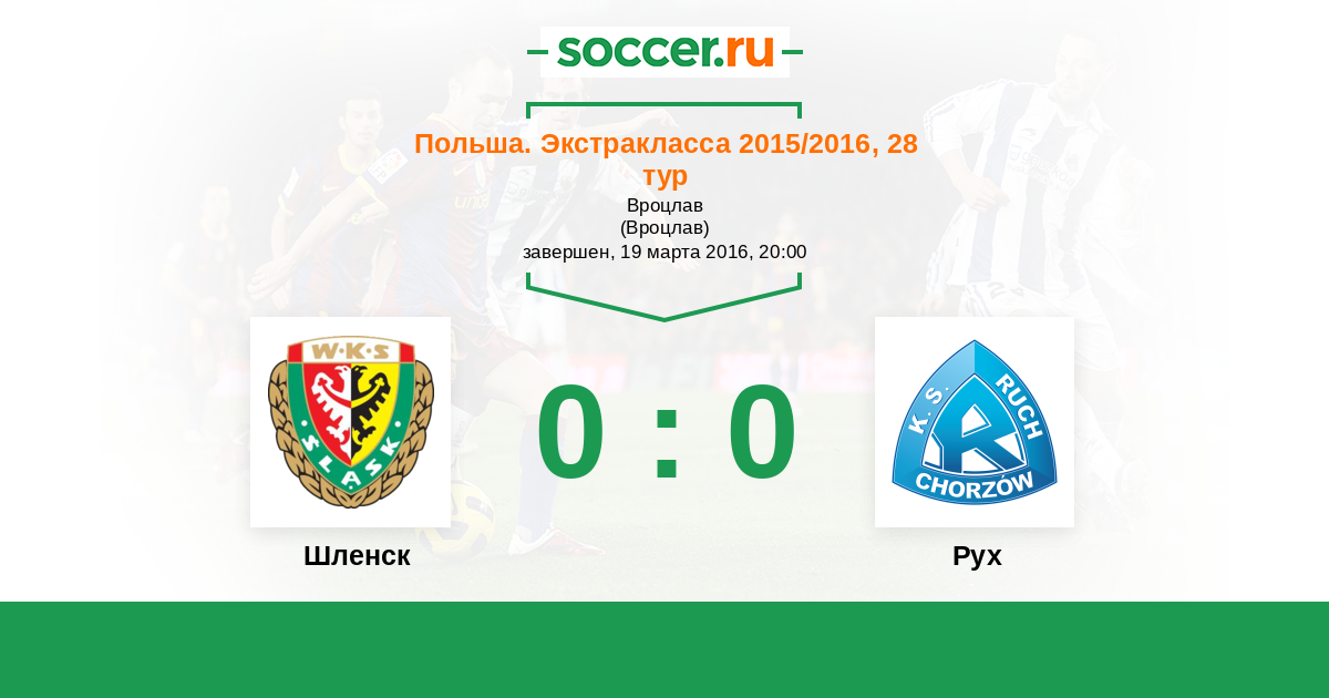 Протокол матча Шленск против Рух