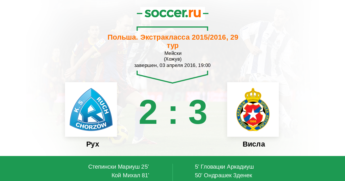 Протокол матча Рух против Висла