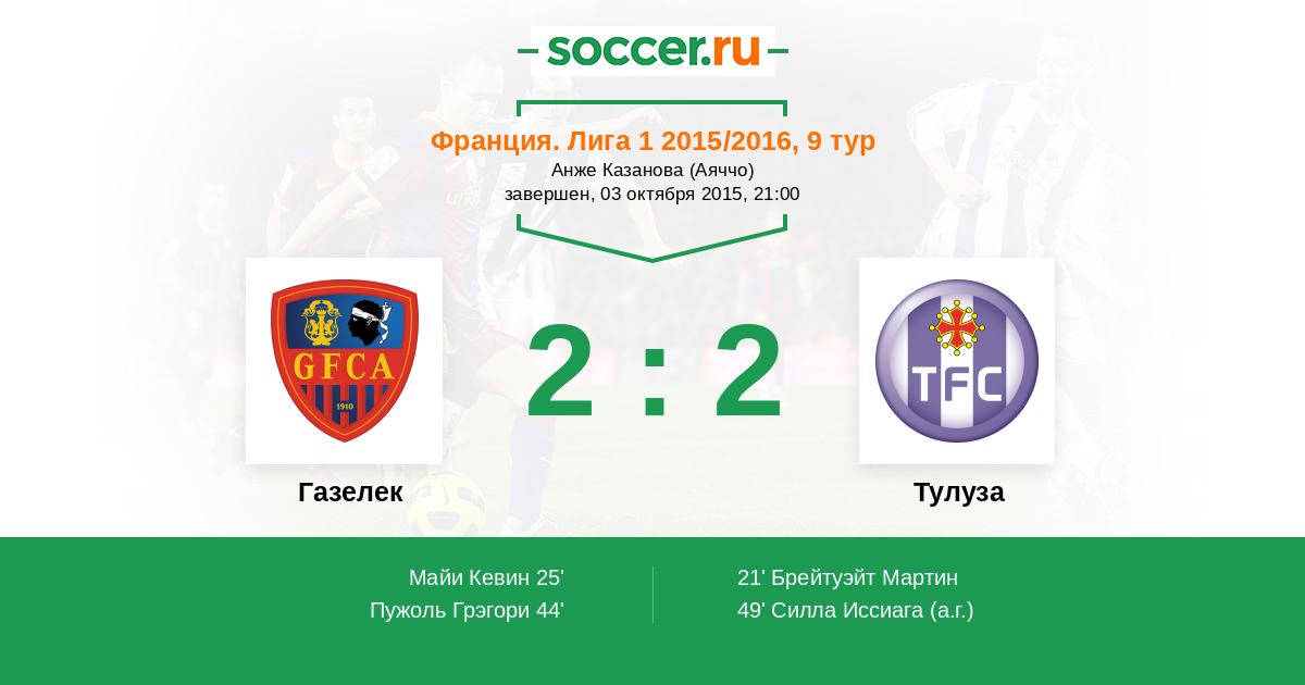 49' (2:2) Автогол Силла Иссиага (3)