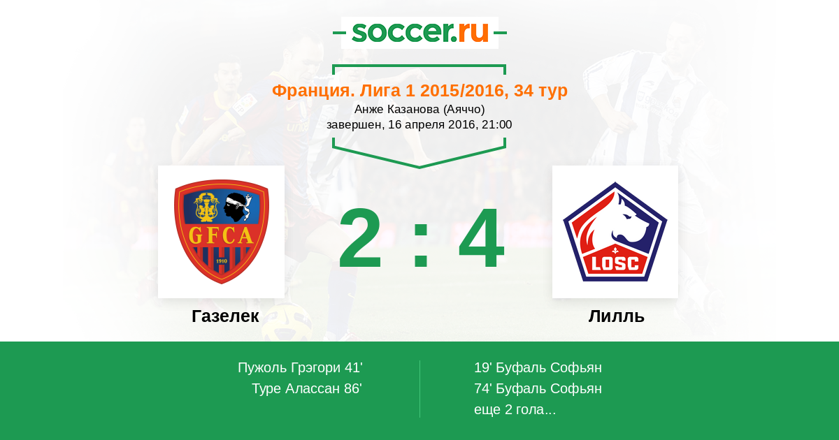 19' (0:1) Буфаль Софьян (7) (Коршья Себастьен (2))