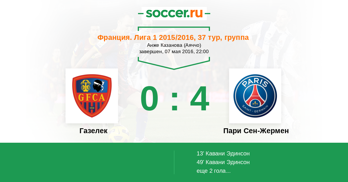 Протокол матча Газелек против Пари Сен-Жермен