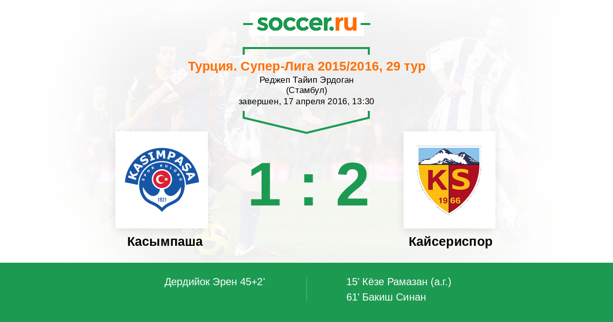 Протокол матча Касымпаша против Кайсериспор