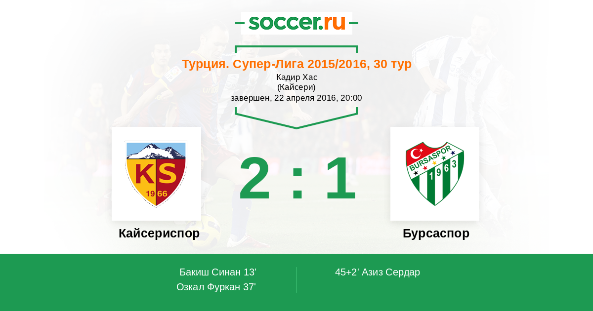 Протокол матча Кайсериспор против Бурсаспор