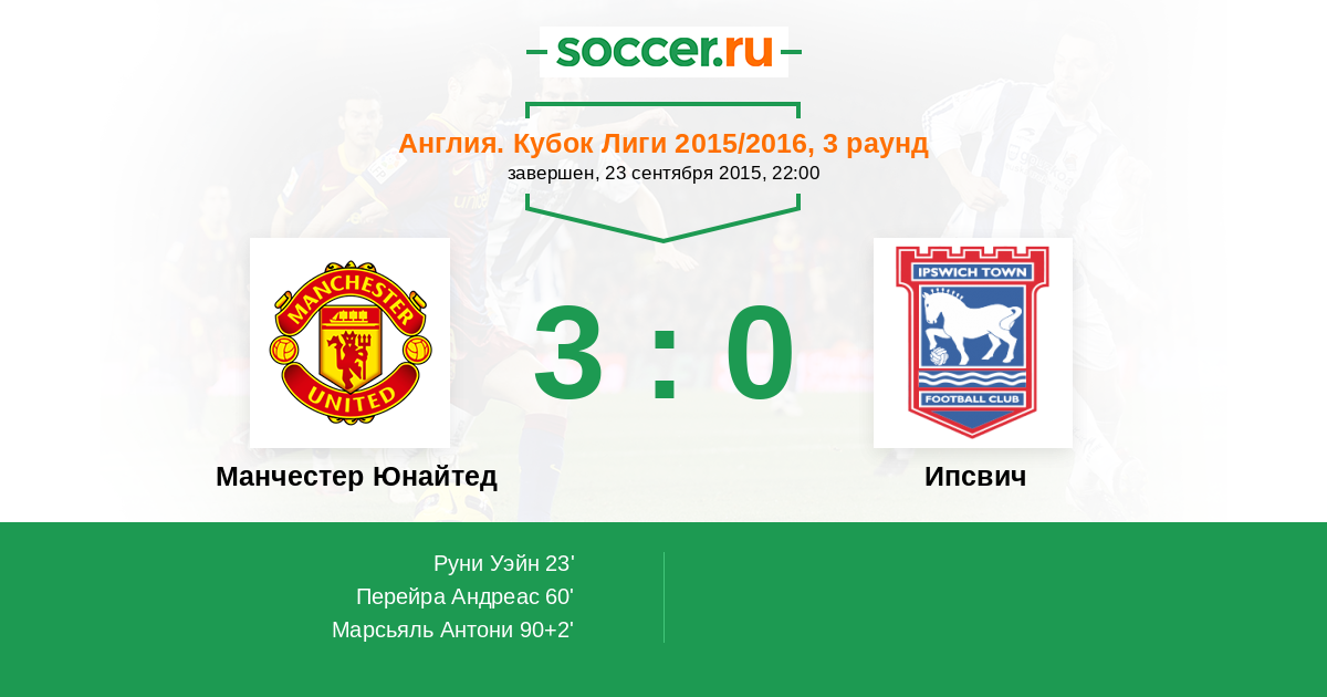 Протокол матча Манчестер Юнайтед против Ипсвич