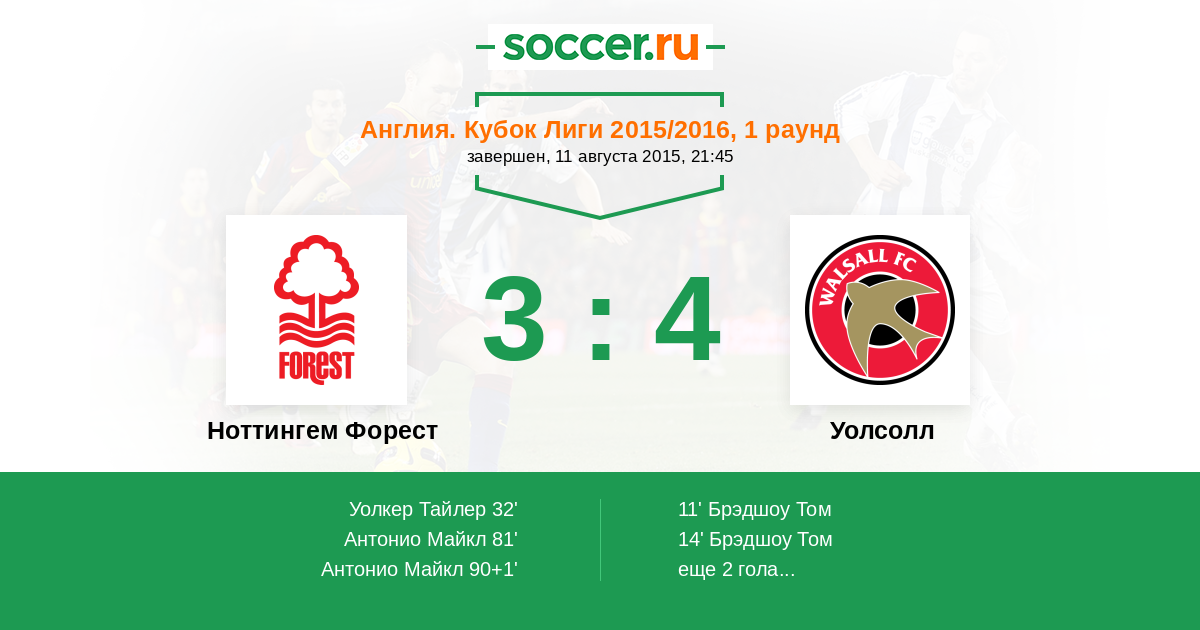 14' (0:2) Брэдшоу Том (9) (Мэнтом Сэм (8))