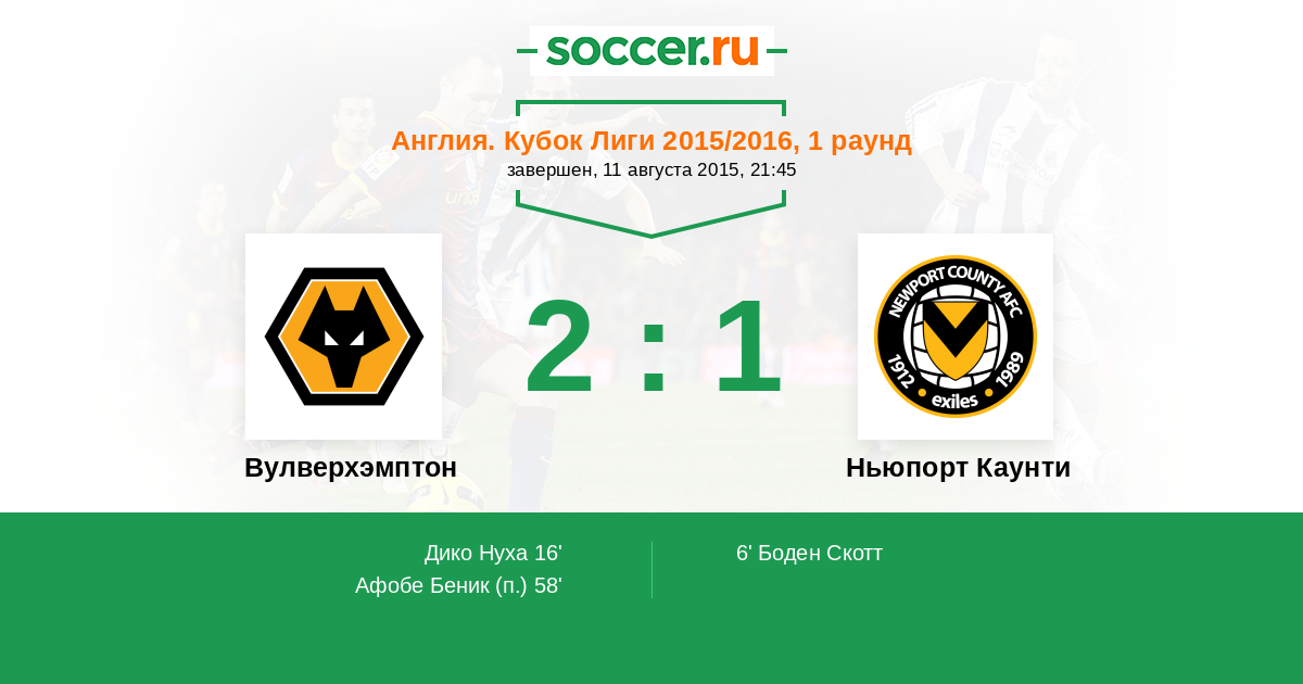 Протокол матча Вулверхэмптон против Ньюпорт Каунти