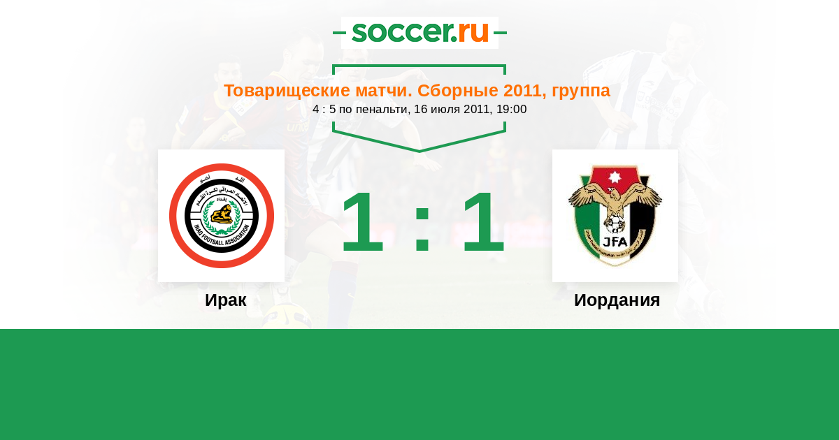 Товарищеские матчи. Сборные 16.09.2010 Иордания Логотип Иордания 4:1 Логотип Ирак Ирак