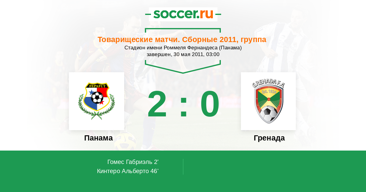 Протокол матча Панама против Гренада