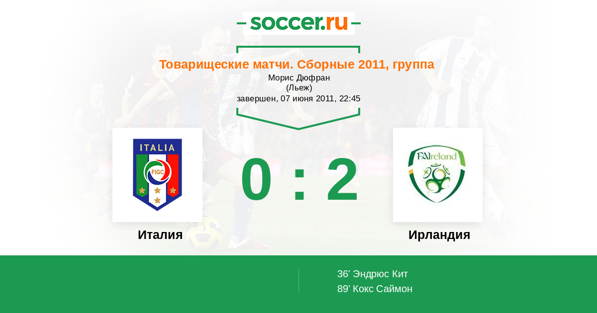 Протокол матча Италия против Ирландия