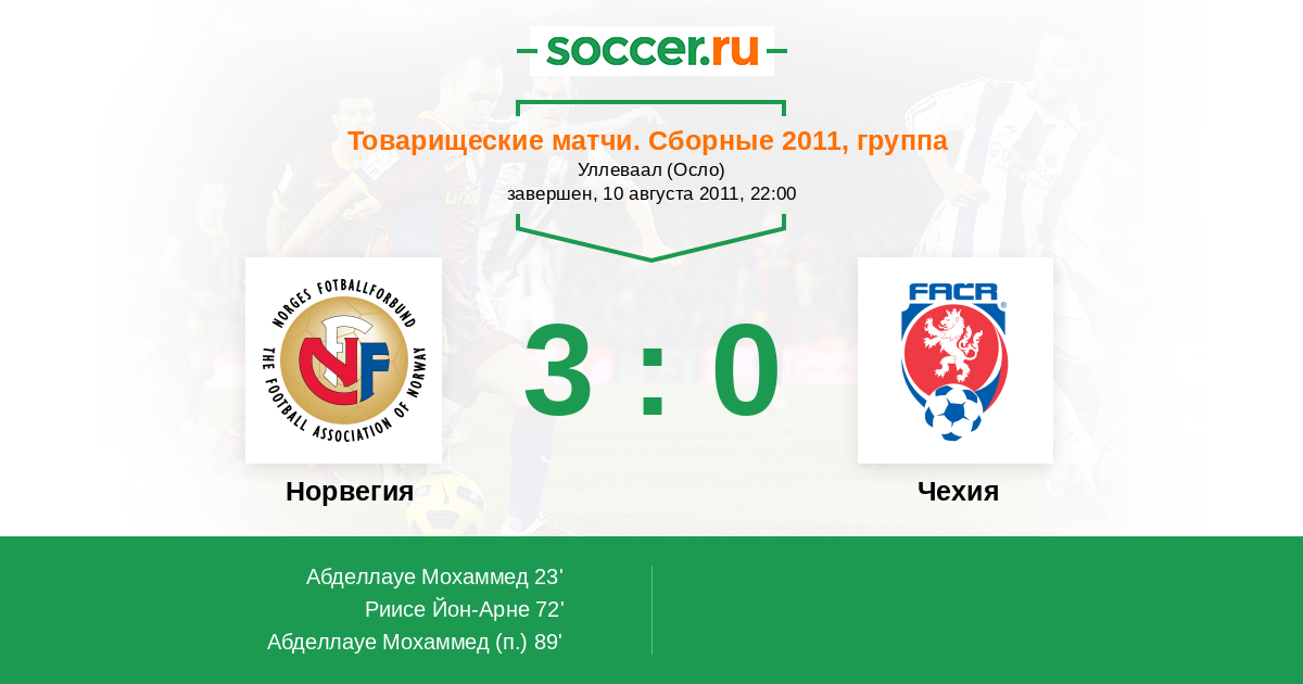 Протокол матча Норвегия против Чехия