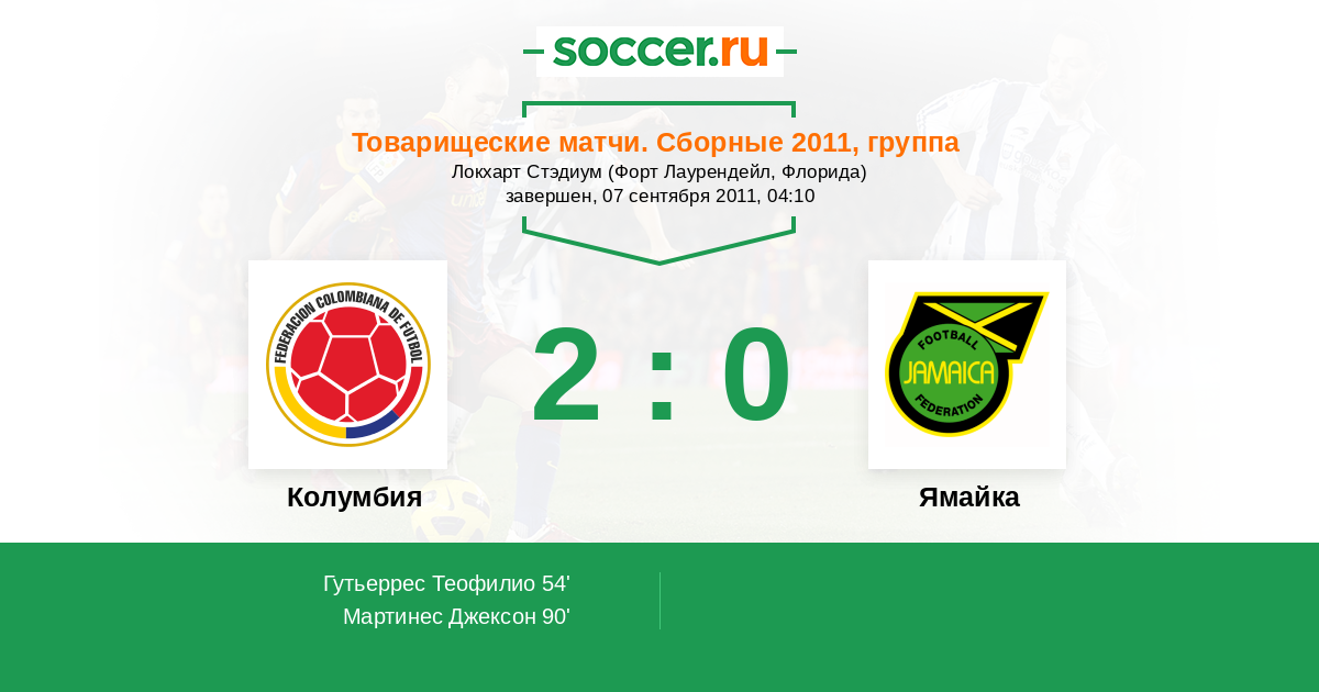 Протокол матча Колумбия против Ямайка