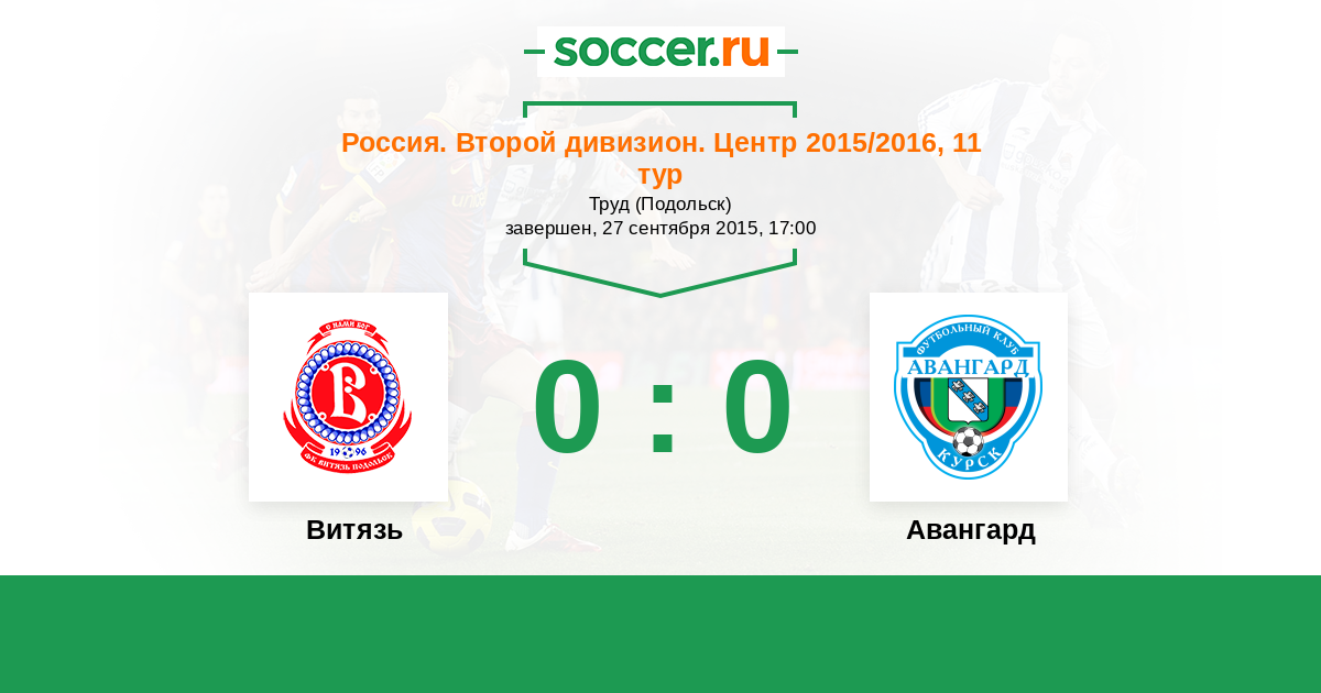 Россия. Вторая лига. Группа 3 11.09.2016 Авангард Логотип футбольный клуб Авангард (Курск) 3:0 Логотип футбольный клуб Витязь (Подольск) Витязь