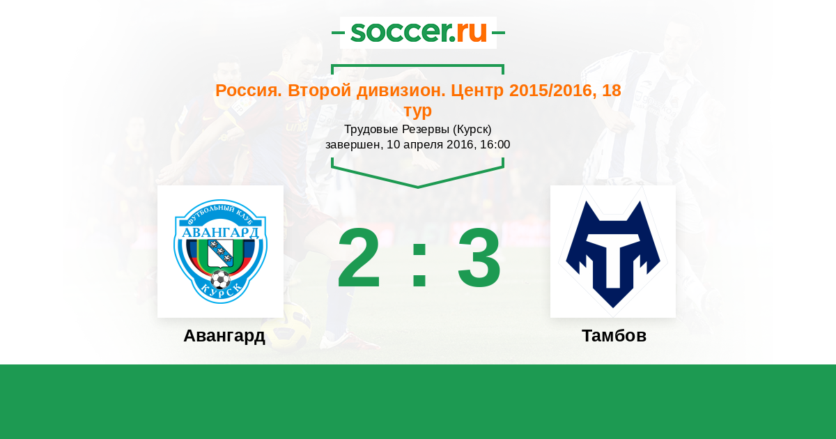 Россия. Вторая лига. Группа 3 24.08.2015 Тамбов Логотип футбольный клуб Тамбов 3:1 Логотип футбольный клуб Авангард (Курск) Авангард