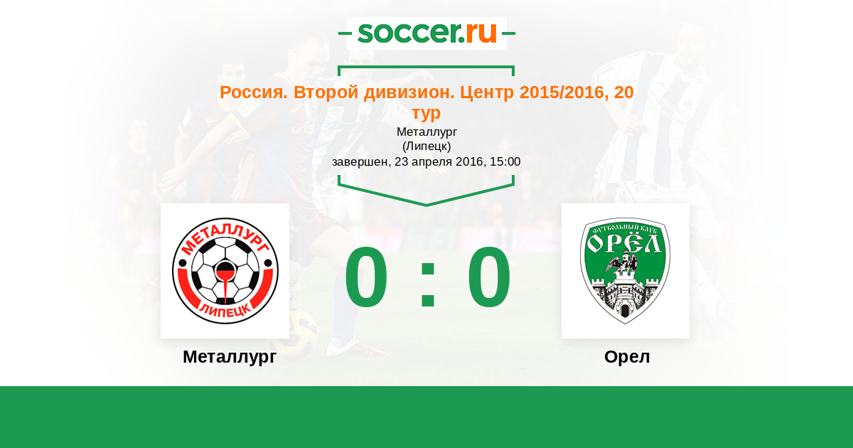 Россия. Вторая лига. Группа 3 07.09.2015 Орел Логотип футбольный клуб Орел 0:0 Логотип футбольный клуб Металлург (Липецк) Металлург