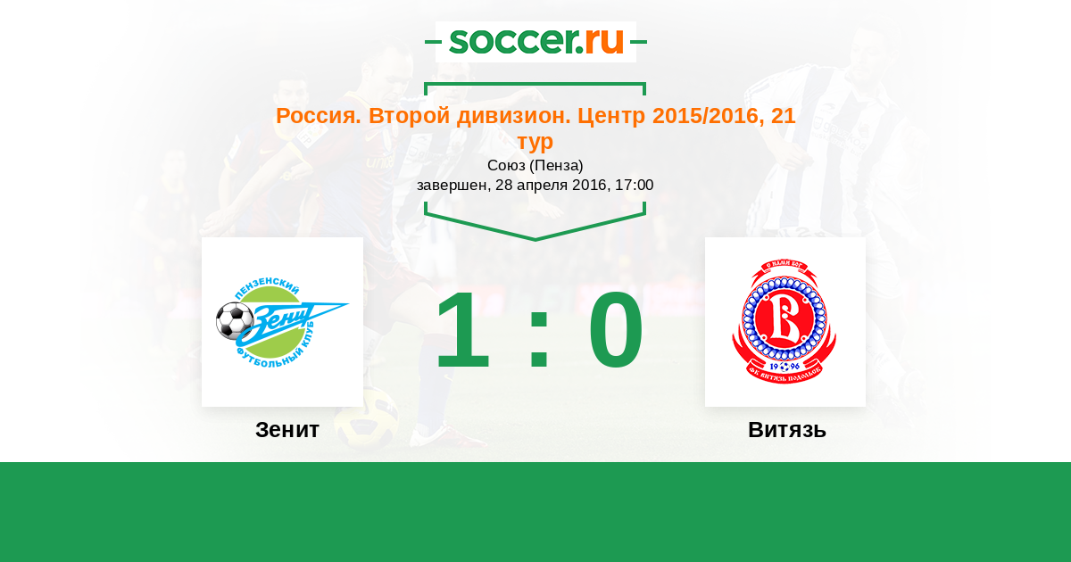Россия. Вторая лига. Группа 3 12.05.2015 Витязь Логотип футбольный клуб Витязь (Подольск) 1:1 Логотип футбольный клуб Зенит (Пенза) Зенит