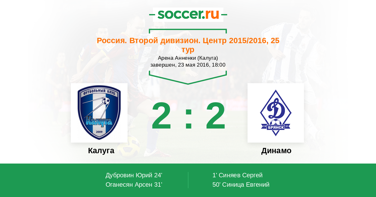 Россия. Второй дивизион. Центр 2015/2016, 25 тур